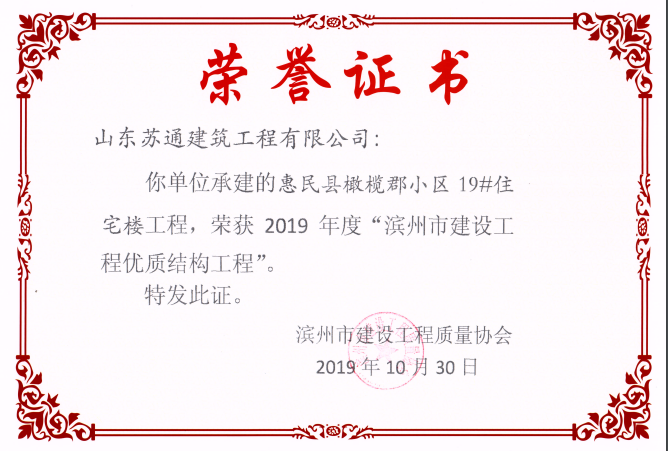 山東蘇通建筑工程有限公司,創(chuàng)建于2009年8月。目前擁有房屋建筑工程施工總承包壹級、市政公用工程施工總承包叁級、水利水電工程施工總承包叁級資質,同時還具有建筑裝修裝飾工程專業(yè)承包貳級、消防設施工程專業(yè)承包貳級、鋼結構工程專業(yè)承包叁級、建筑機電安裝工程專業(yè)承包叁級等專業(yè)承包資質。 公司總部坐落于山東省濱州市濱城區(qū)黃河十二路877號,現(xiàn)有辦公面積約2000平方米,機構設黨支部工會辦公室、總經理辦公室、綜合辦公室、工程管理部、經營預算部、資產財務部、材料設備部、運行管理部、法律事務部等多個職能部門。公司管理體系已經通過了GB/T 19001及GB/T 50430質量管理體系、GB/T 24001環(huán)境管理體系(EMS)、GB/T 28001職業(yè)健康安全管理體系(OHSMS)等體系的認證。 公司承建完工了濱州市建大教師之家、建大清怡苑、香格里拉水岸綠城住宅小區(qū)、雙泰建大城、曲阜崇德公館住宅小區(qū)、北海新區(qū)御景藍灣住宅小區(qū)、沾化德榮國際華城住宅小區(qū)、惠民橄欖郡住宅小區(qū)等工程項目,目前在建工程項目有:濱州市頤高國際電子商務產業(yè)園住宅小區(qū)項目、濱州市東盛國際項目、高新區(qū)建大中央華府住宅小區(qū)項目、濱州市融匯新里程住宅小區(qū)項目、濱州市建大秦皇壹號住宅小區(qū)項目、濱州市森林花...